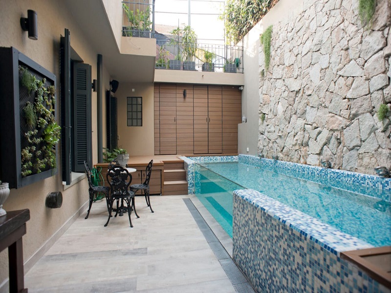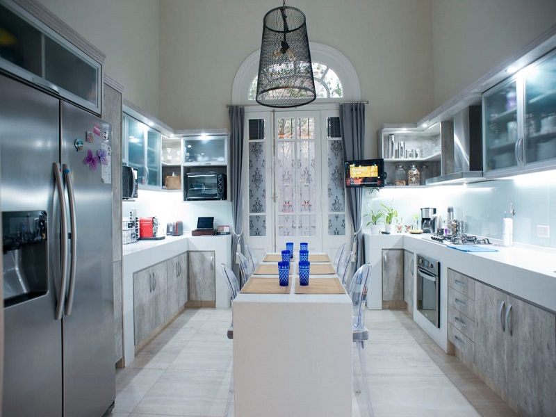 Residential house of 4 bedrooms with a private bathroom each, parking garage, guest house and swimming pool. It counts with AC and heaters, and security video cameras.